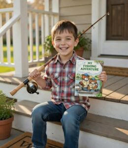 Available in either children’s or Grown-Up’s versions. This fishy tale begins when your child or adult falls asleep and dreams about the big fishing contest. Your child transformed into a Fishing Bear and manages to overcome those fishing challenges to catch the biggest fish ever seen. The children’s version is cute and will “catch” your child’s attention, while the adult version pokes fun at the one who always catches the biggest fish.